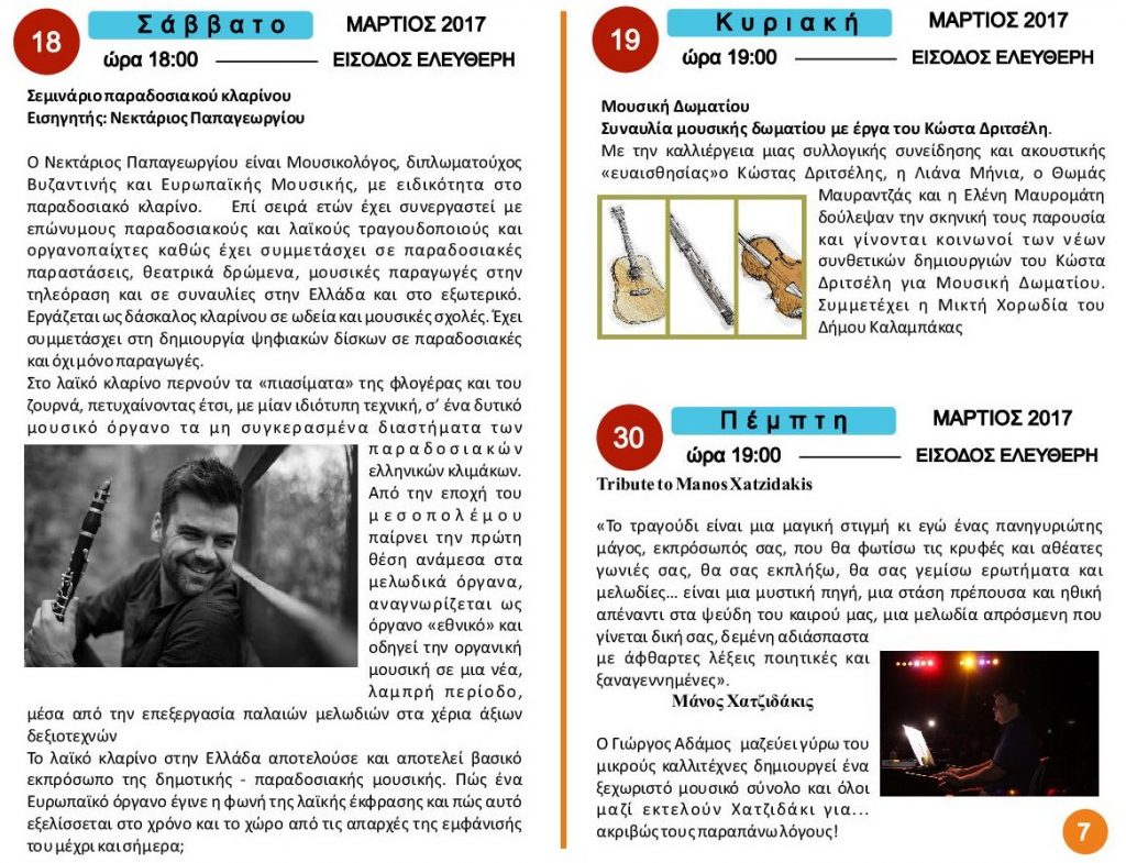 Εκδηλώσεις – Σεμηνάρια Μουσικής Σχολής 2016 – 2017